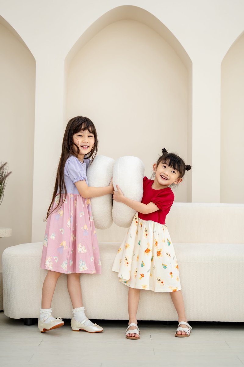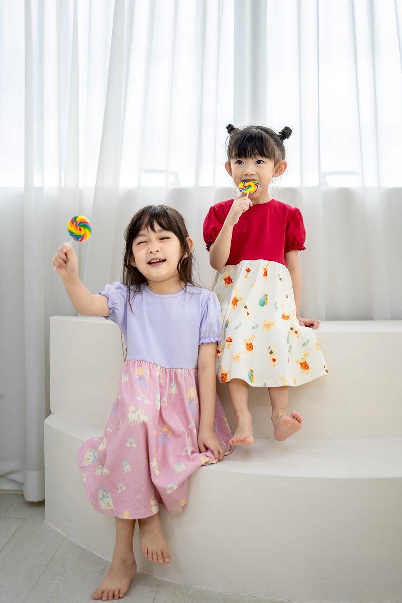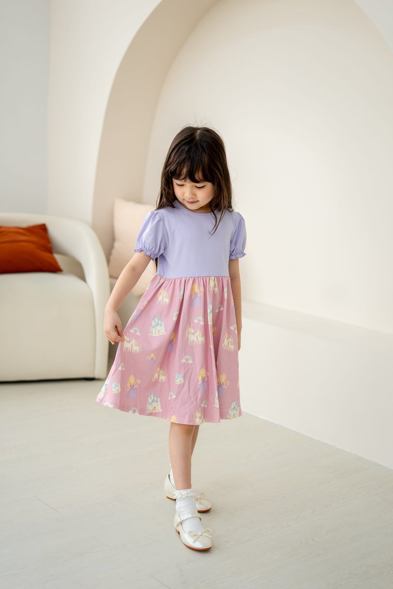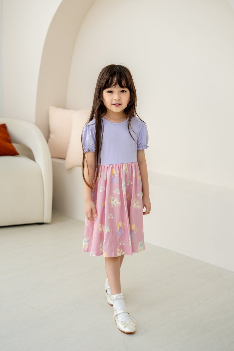 Spark joy and imagination with this enchanting dress, designed for little princesses! Adorned with unicorns, castles, rainbows, and lollipops, it’s a world of magic in every twirl!